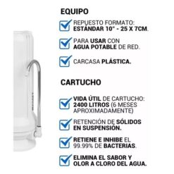 Fabricado en polipropileno con filtro de carbon activado impregnado e plata coloidal.